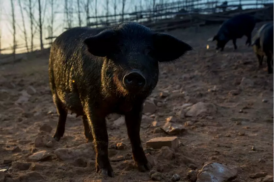 ·字体旁边的图画,山林与猪,是我们的自然散养生态方式