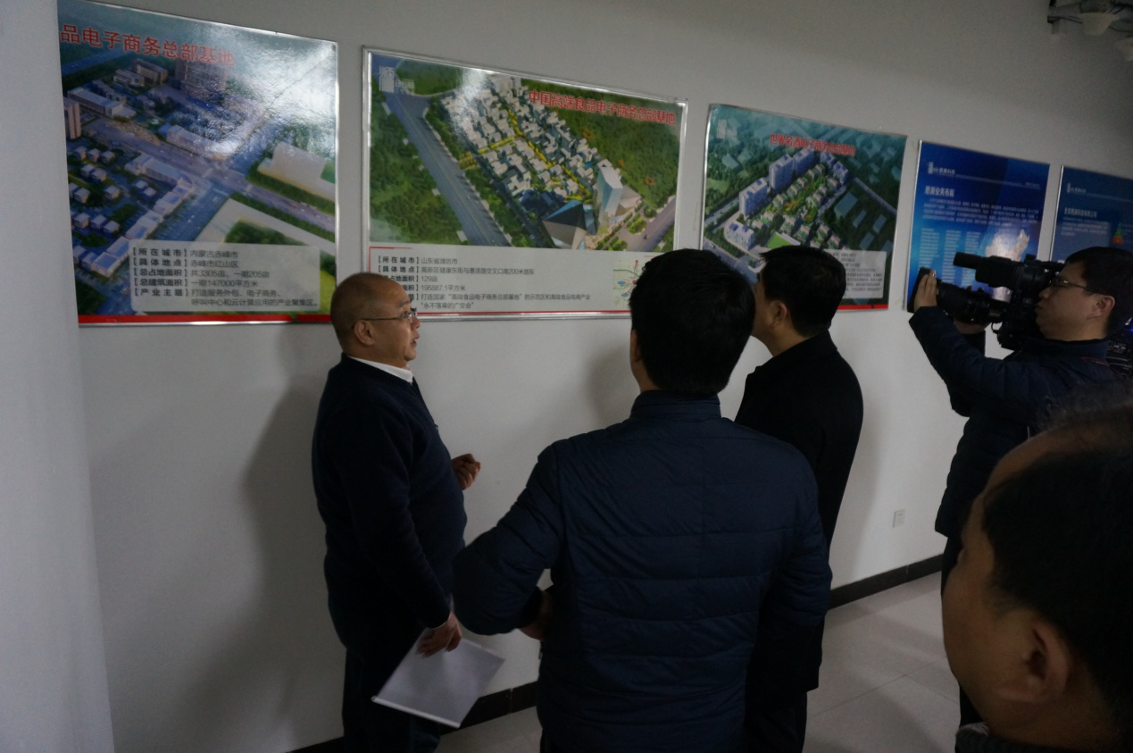 曹总一边带领鄂书记一行参观公司,一边汇报公司2017年运营情况及园区项目情况。公司自2013年成立的4年时间以来,客户已遍布全国二十八个省份,形成以“地标认证-云溯源-区域公用品牌-源乡愁电商平台-地标特色小镇”区域地标特色产业发展的新模式。