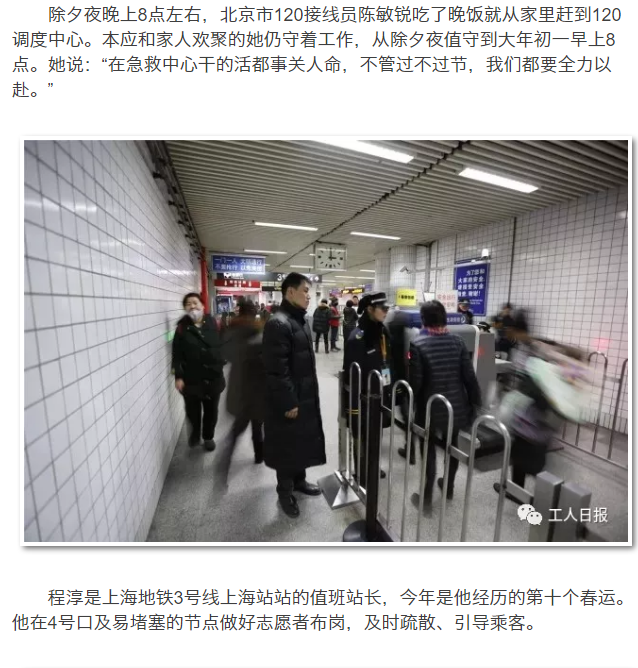 万家团聚时,你可曾想过,交警仍在用职责和使命,保障出行的畅通;医生护士仍在用坚守与爱心,守护生命的安全;环卫工人仍在辛勤劳动,保障人民生活的清洁……他们在平凡的岗位,完成不平凡的坚守!
