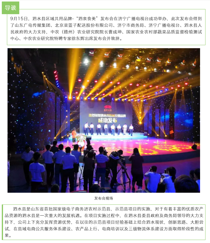 【今日头条】泗水县“泗泉食美”区域公用品牌正式发布