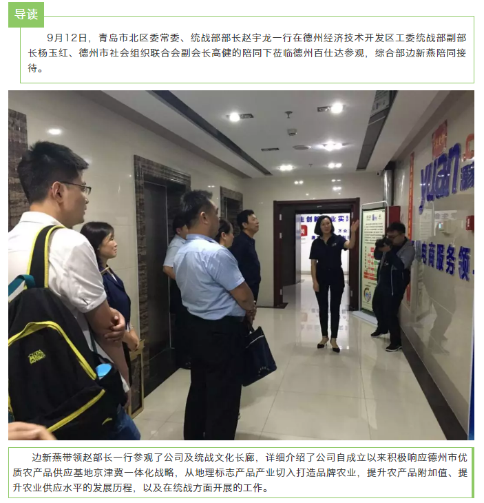 青岛市北区委常委、统战部部长赵宇龙一行莅临德州百仕达参观
