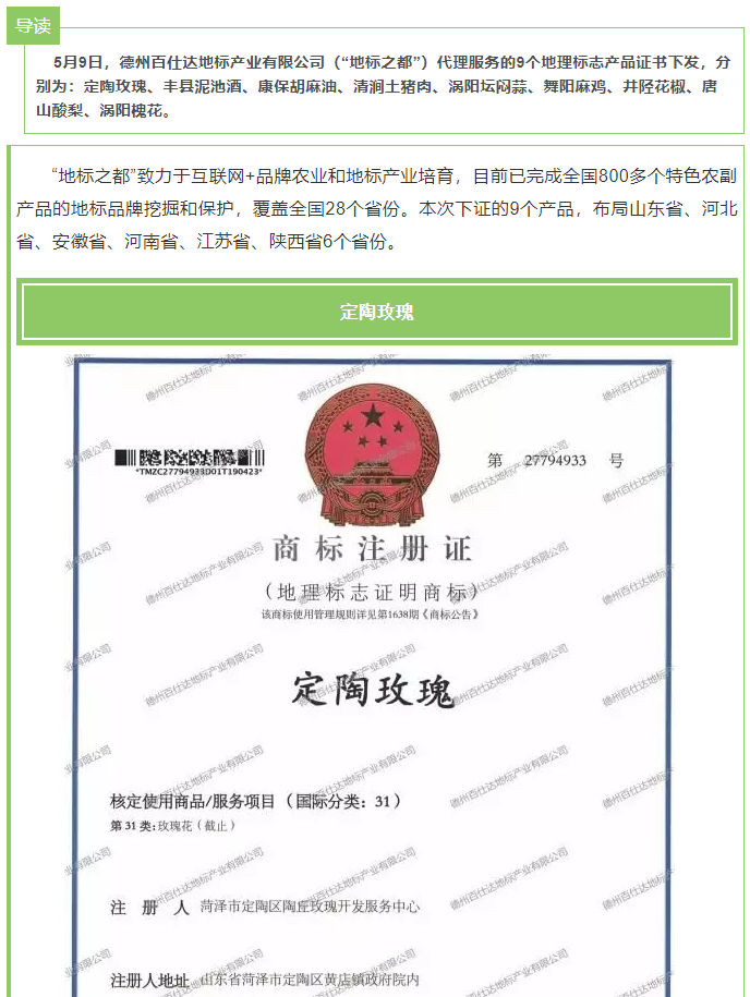 恭喜“地标之都”服务的9个国家地理标志产品证书下发!