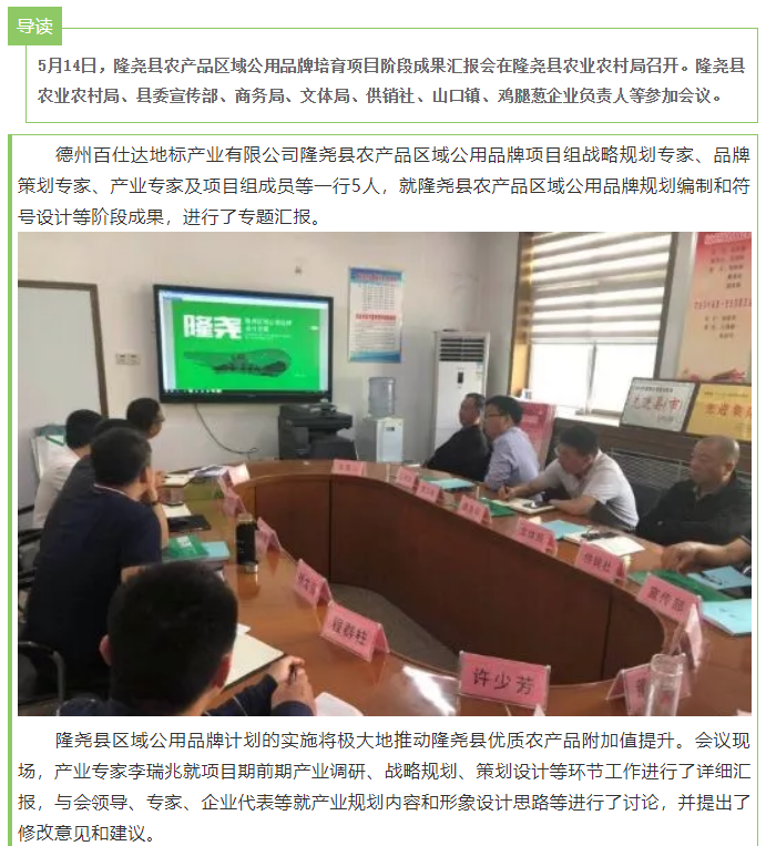 隆尧县农产品区域公用品牌培育项目阶段成果汇报会顺利举行