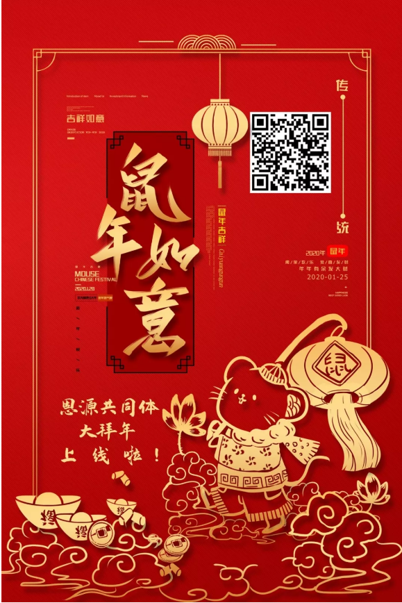 鼠年到,恩源共同体在这里给大家拜年了,祝大家在新的一年里有“鼠”不尽的快乐,“鼠”不完的幸福,“鼠”到手软的钞票!