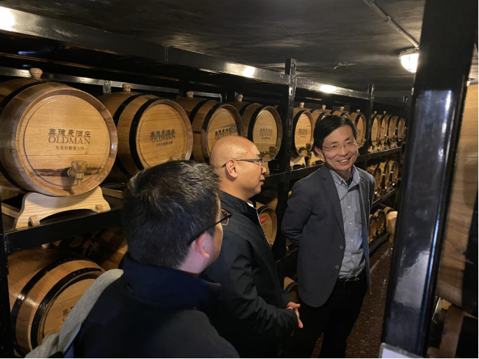 奥德曼酒庄,是一家集葡萄种植、观光、葡萄酿造和葡萄酒销售于一体的专业高档葡萄酒庄。董事长徐义和总经理董兴水向运营中心同事介绍了红酒定制服务,双方就今年在济南展销店、与授权企业联合招商以及红酒美食特产套餐等方面进行交流洽谈。