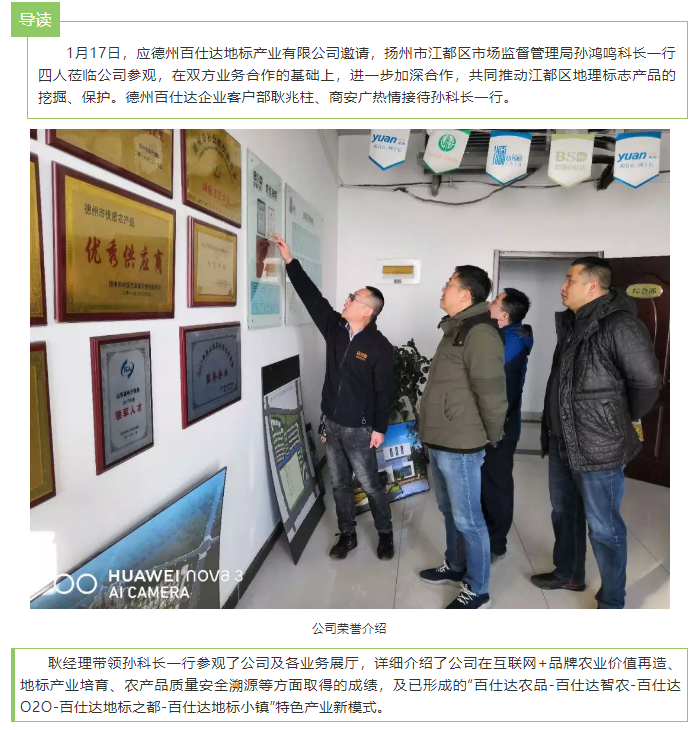 扬州市江都区市场监督管理局领导一行莅临德州百仕达参观指导