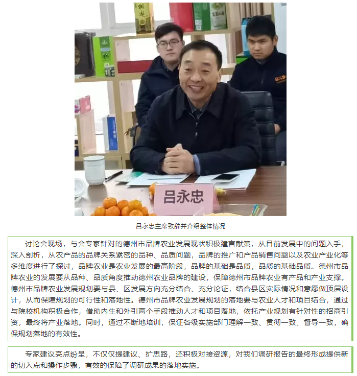 热烈祝贺德州市品牌农业发展研讨会顺利举行