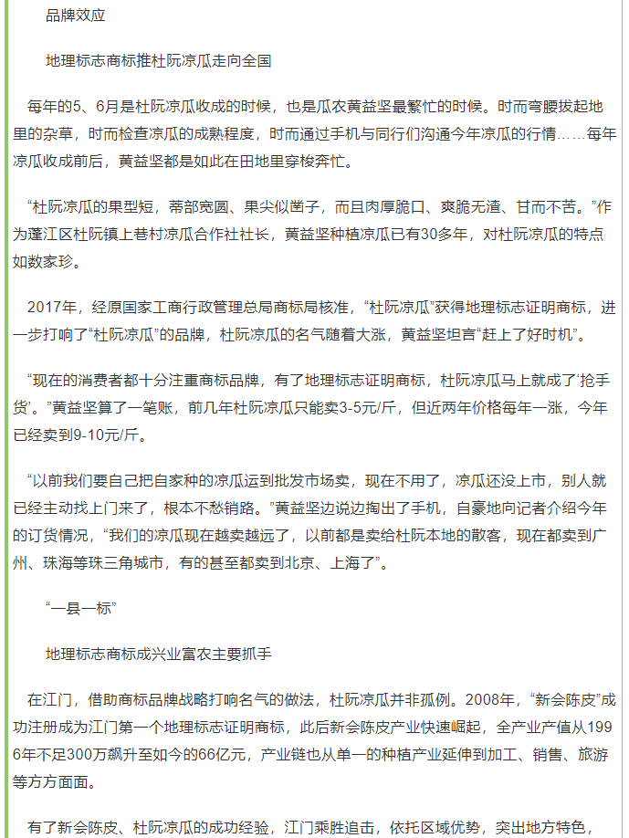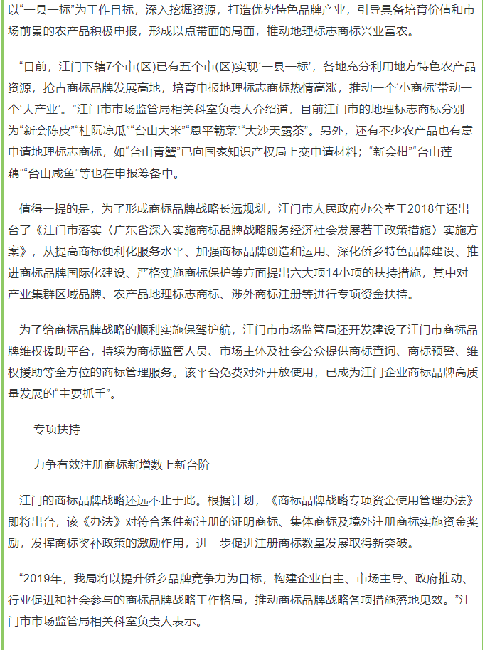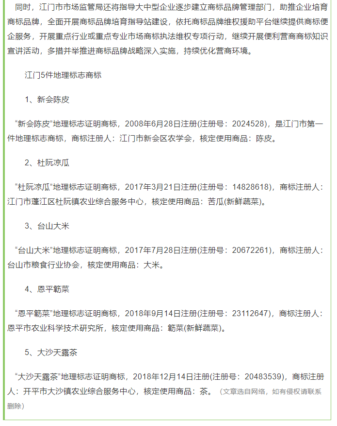 江门地理标志商标数量越来越多 商标品牌战略助江门兴业富农