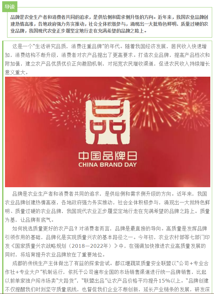 2019中国品牌日,品牌点亮农业高质量发展之路