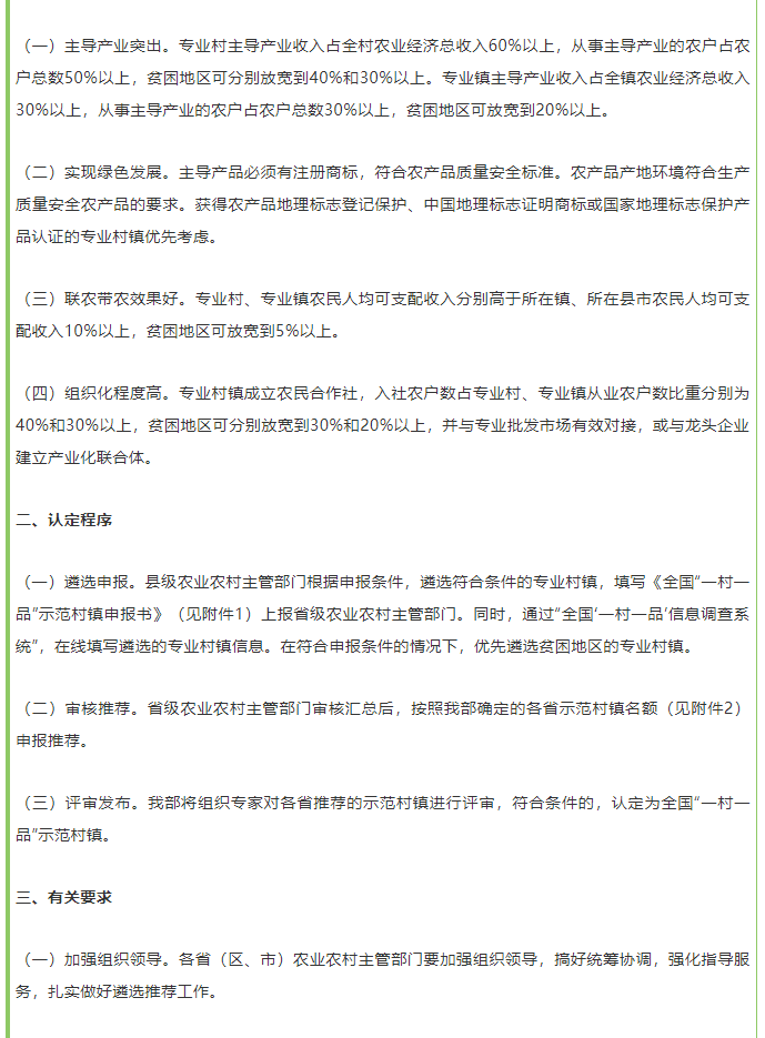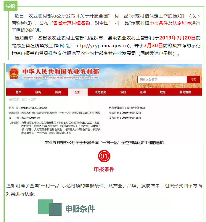 农业农村部:"一村一品"示范村镇如何申报