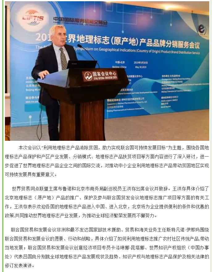 2019世界地理标志(原产地)产品品牌分销服务大会在京举行