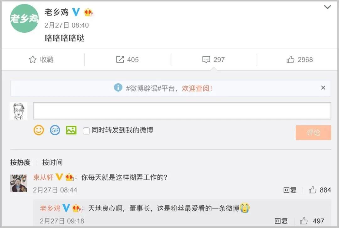 老乡鸡在这次疫情中的出圈,要从手撕“员工减薪请愿书”开始。当时老乡鸡员工写信盖手印说要与企业共存亡不要工资了,结果董事长束从轩非但没有同意,还怒撕请愿书,说:“你们太糊涂,我的责任是照顾好你们,给你们发工资,我卖房卖车也要养着你们......”老乡鸡被新媒体用4亿次的点击量捧为网红,甚至中央主流媒体也放下身段,提出专访要求,银行更是送来10亿元的大额授信。