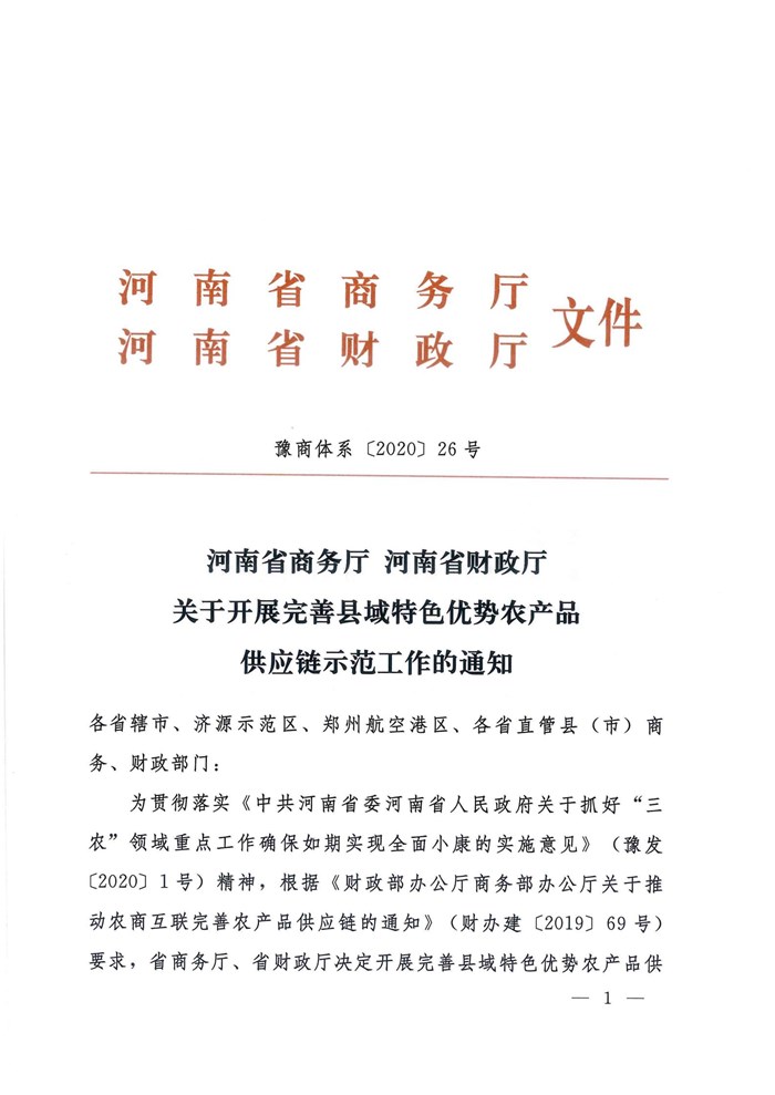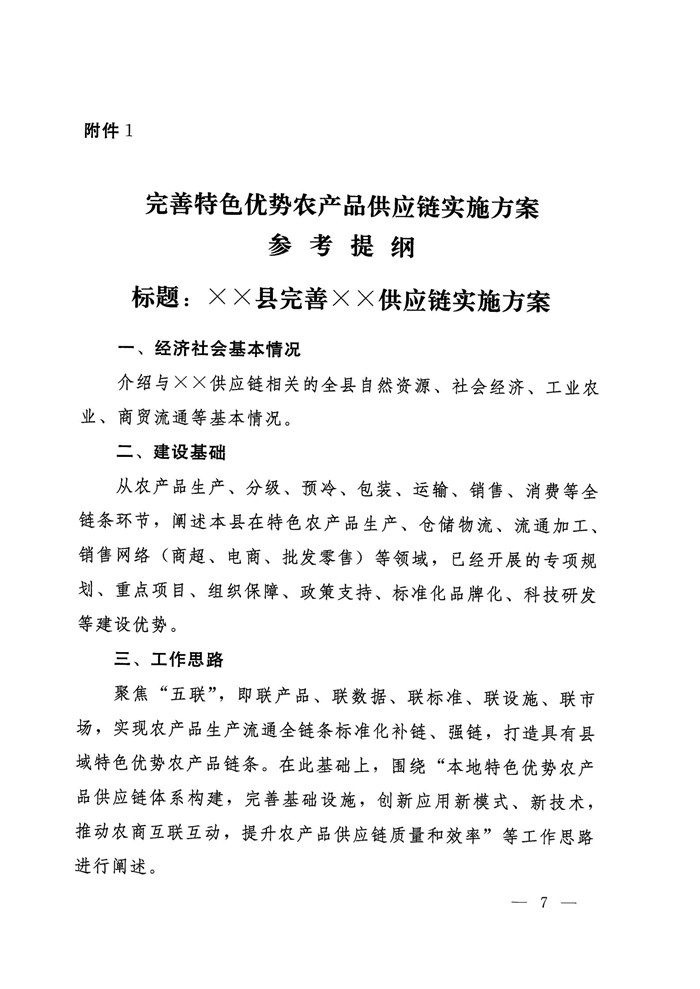 关于开展完善县域特色优势农产品供应链示范工作的通知