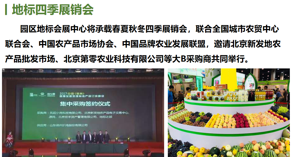 4月7日“德州味”品牌运营中心在地标之都正式挂牌成立,4月10日由德州市人民政府主办的“德州味”区域公用品牌发布会在北京全国农业展览馆隆重举办,德州市委副书记、市长杨洪涛正式宣布德州市农产品区域公用品牌“德州味”品牌融媒体宣传平台和品牌运营中心正式启用。“德州味”运营中心的成立将为德州市的品牌农业经营主体提供产品展销服务、品牌推广服务、品牌咨询服务、农技培训服务、质量追溯服务、农创之家服务、项目申报服务七项公共服务。