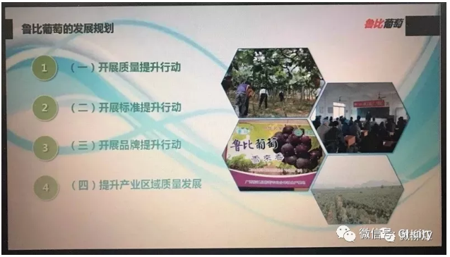 2015年,柳江区启动实施葡萄品质提升计划。通过加强果园基础设施建设、引进和培育新品种、优化栽培管理技术、强化管理制度、降产提质增效等措施,结合都市休闲旅游,发展观光农业和电子商务,提升了葡萄产业。国内外同行由此纷纷前来学习规范化、基地化、标准化、品牌化等成功经验,特别是越南、柬埔寨、马来西亚等东盟国家和地区的农业技术研究人员前来学习取经。