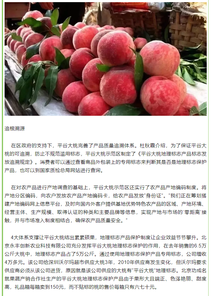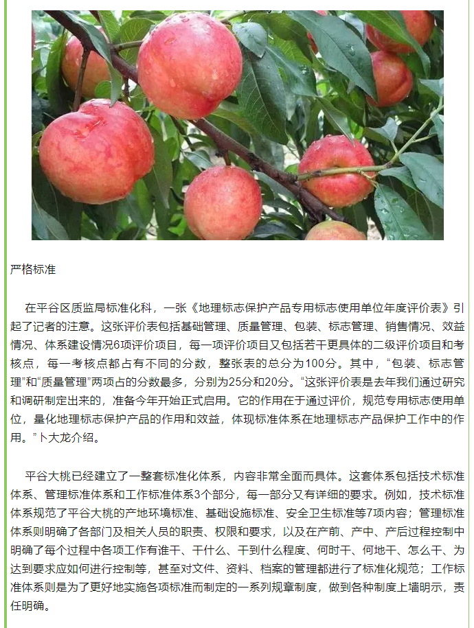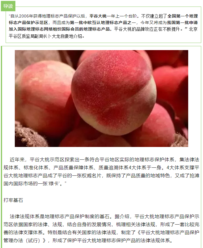 平谷大桃建设地理标志产品保护体系