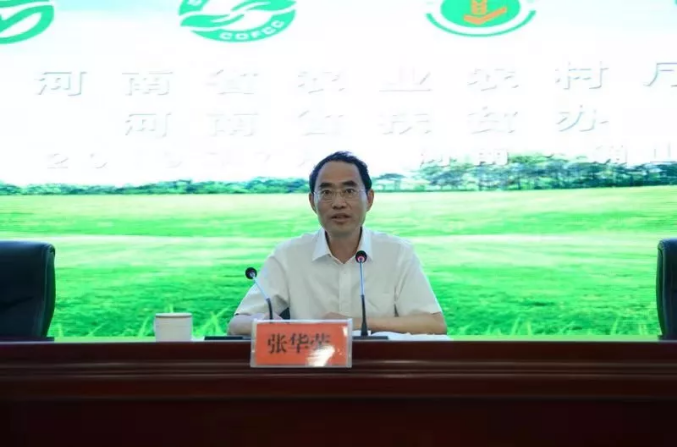 中国绿色食品发展中心主任张华荣、河南省农业农村厅厅长申延平、河南省扶贫开发办公室副主任郭奎立出席会议并分别讲话,驻马店市人民政府副市长刘晓文出席会议并致词。会议由河南省农业农村厅党组成员、副厅长刘保仓主持。