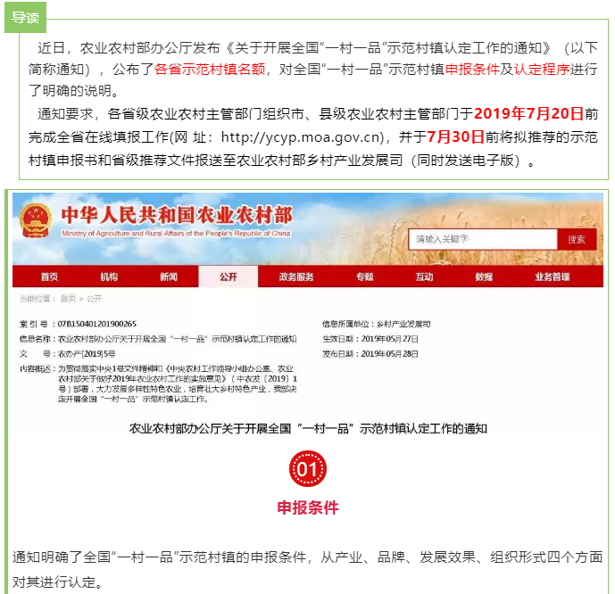 农业农村部:"一村一品"示范村镇如何申报